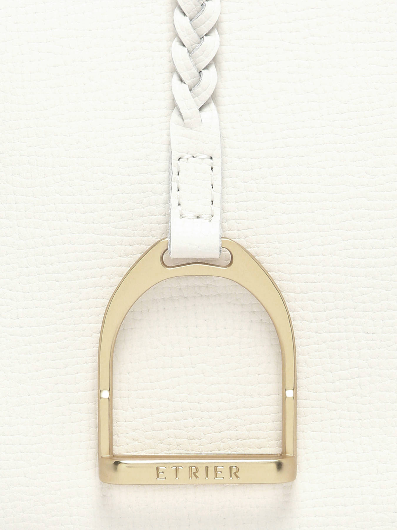 The TORSADE crossbody bag by Etrier embodies contemporary elegance with subtle sophistication. Crafted from textured cowhide leather, it stands out with its signature detail: a delicately braided strap adorned with a refined stirrup-inspired charm, adding a distinctive and precious touch. Its sleek silhouette is designed to elevate any look, from everyday wear to more dressed-up occasions. The secure and refined zip fastening enhances its elevated aesthetic. With an adjustable and removable strap, it can be worn effortlessly crossbody or carried by hand, depending on your mood and style. Inside, a thoughtfully designed layout featuring two compartments, one flat pocket, and one zipped pocket ensures perfect organization of your essentials. An iconic piece where craftsmanship meets style — turning detail into jewelry and design into a true fashion signature.