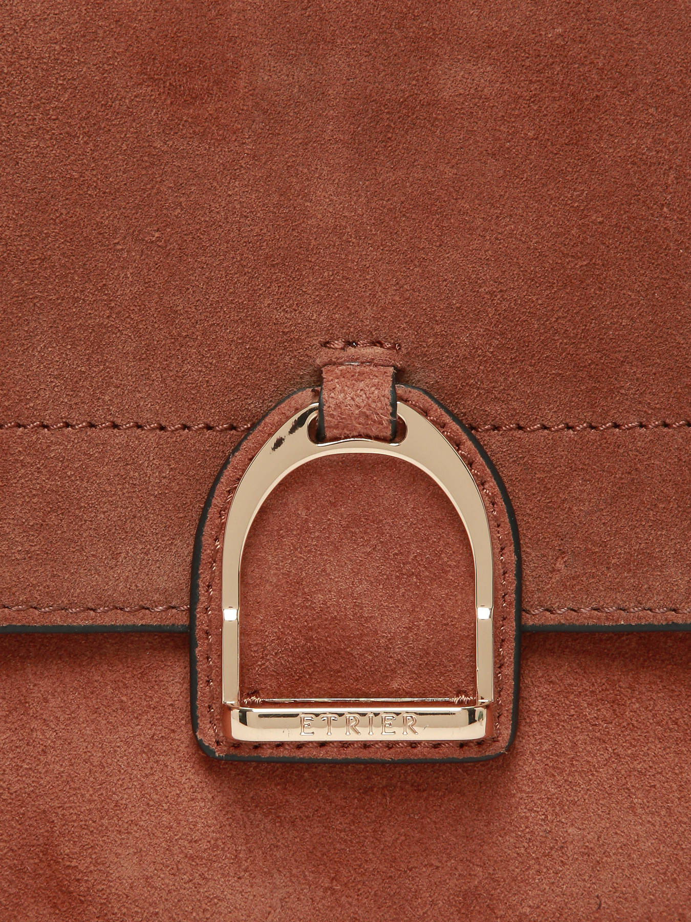 The ETRIER crossbody bag from the ALTESSE SUEDE line is available in its smallest size, the XS model. This new iconic line is crafted from velvety leather with a soft touch, offering a warm and elegant look that stays true to the ""Highlander Cowboy"" spirit. Compact yet refined, this model closes with a magnetic flap enhanced by the gold-tone Etrier emblem. The back of the bag is made of grained leather for better durability. It also features a back pocket, a small handle for handheld carrying, as well as an adjustable and removable strap for shoulder or crossbody wear. The perfect accessory to elevate your seasonal looks.